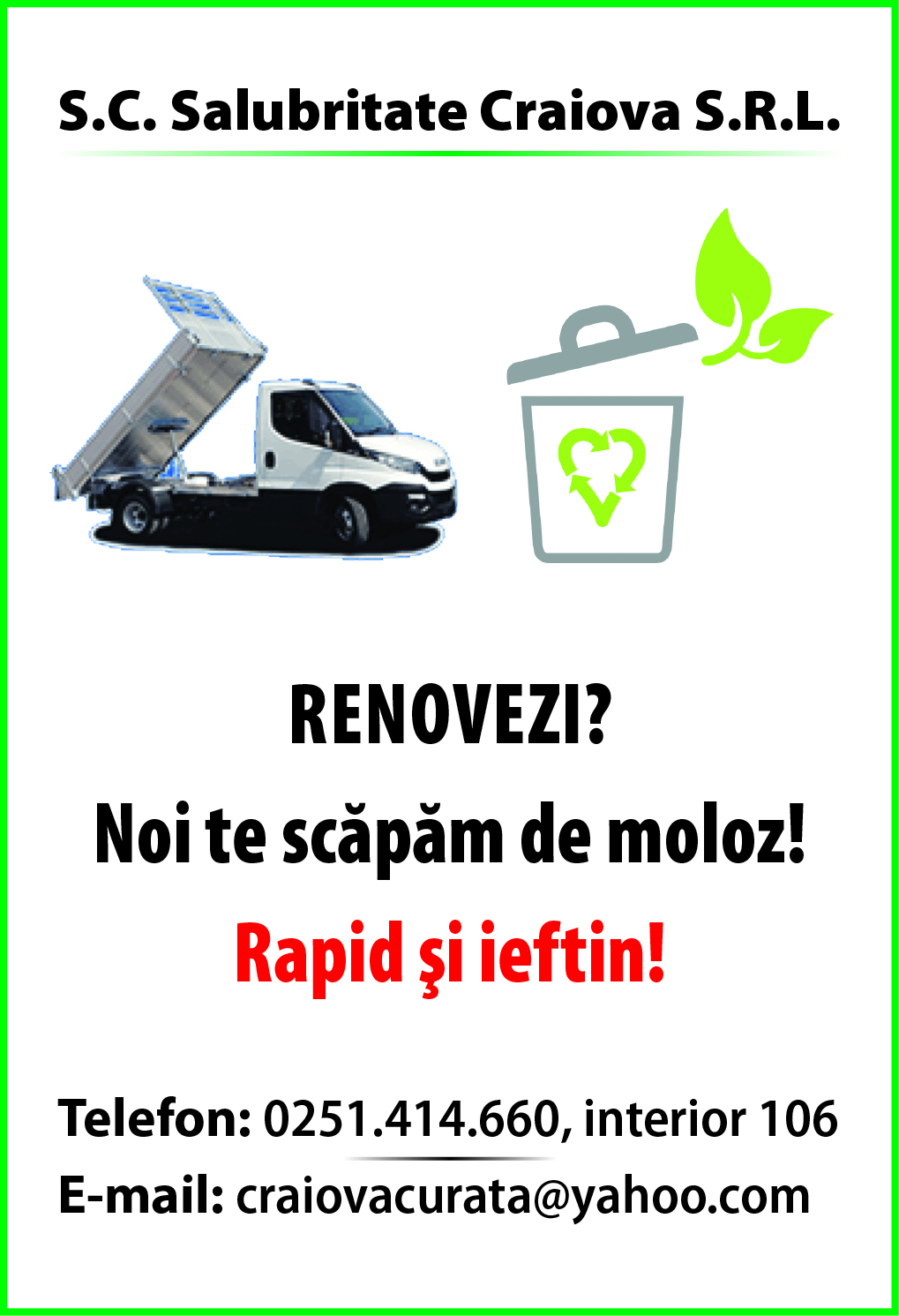 Potrivit datelor furnizate de agenţii economici privind locurile de muncă vacante, în evidenţele Agenţiei Judeţene pentru Ocuparea Forţei de Muncă Dolj, sunt disponibile 259 locuri de muncă . Din cele 259 locuri de muncă vacante, 32 sunt destinate persoanelor cu studii superioare (tehnician echipamente de calcul si retele, inginer sudor, maistru energetician/electrician, inginer electrotehnist, inginer sisteme de securitate, inginer