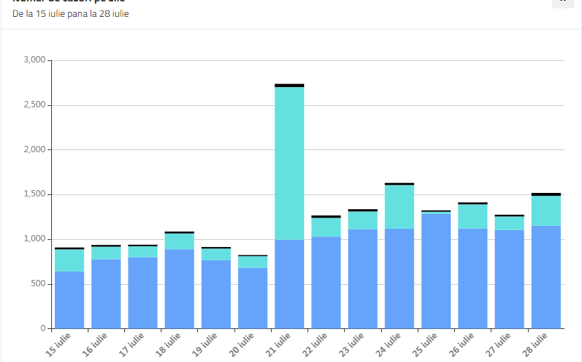 Până la această dată, la nivel național, au fost prelucrate 1.131.699 de teste. Dintre acestea 21.135 au fost efectuate în ultimele 24 de ore, 13.127 în baza definiției de caz și a protocolului medical, iar 8.008 la cerere. De asemenea, de la ultima informare făcută de GCS, au fost raportate și rezultatele a 30 de teste prelucrate anterior ultimelor 24 de ore și transmise până la data de 28 iulie.