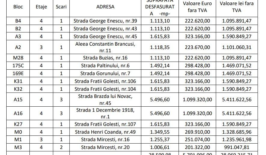 Este vorba despre 15 imobile din diferite cartiere craiovene (vezi foto).