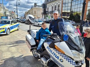 Oaspeții noştri au putut admira tehnica din dotarea „mascaților”, dar și autospecialele de poliție rutieră, motocicleta de poliție și instrumentele polițiștilor criminaliști.