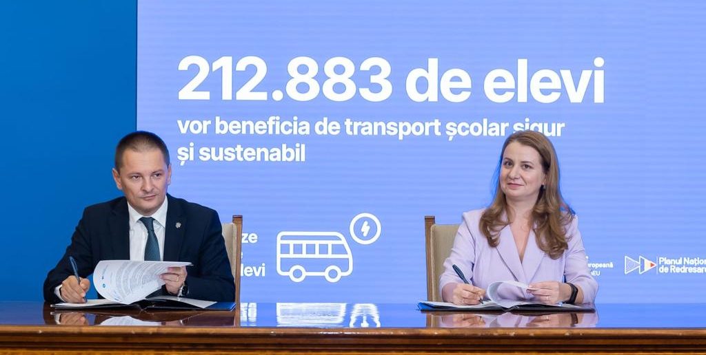 Un contract cu finanțare nerambursabilă în valoare de peste 35 de milioane de lei, prin care vor fi achiziționate 24 de microbuze electrice destinate transportului școlar, a fost semnat, marți după-amiază, în cadrul unei ceremonii organizate la Palatul Victoria, în prezența prim-ministrului Marcel Ciolacu.
