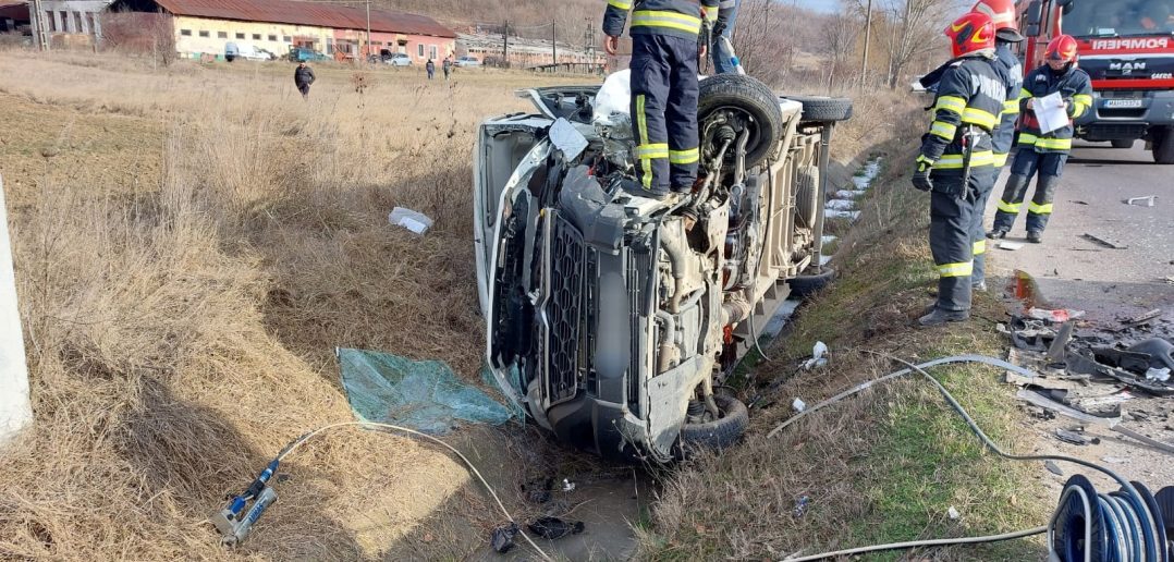 La sosirea pompierilor, o persoană se afla blocată într-un autoturism. Salvatorii au extras de urgență victima care a fost preluată de către echipajul SAJ.