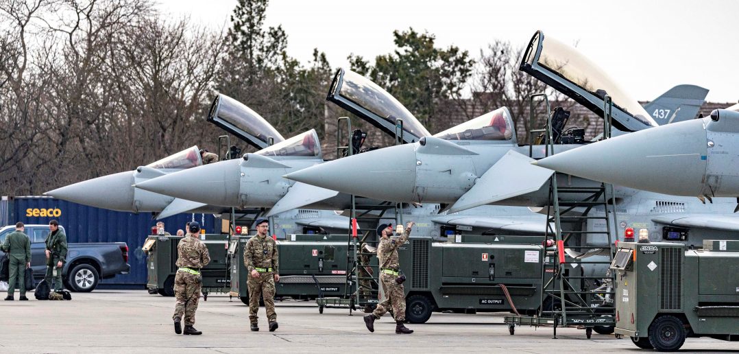 Patru aeronave Eurofighter Typhoon ale Forțelor Aeriene Regale Britanice (RAF) au aterizat miercuri, 30 martie, în Baza 57 Aeriană de la Mihail Kogălniceanu din județul Constanța.