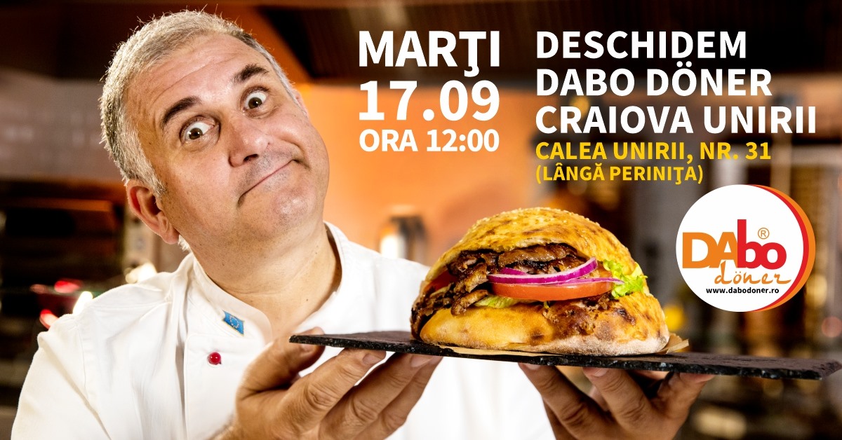 HOBNASTAFOOD S.R.L. anunţă cu bucurie şi mândrie că este beneficiarul unui proiect START UP – ediţia 2019 şi reuşeşte astfel să aducă la Craiova, şi în felul acesta, brand-ul DABO DÖNER – brand naţional de mare succes din lumea fast food-ului.