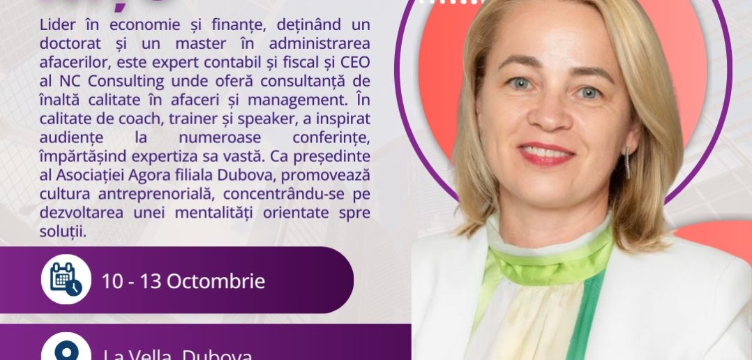 Asociația Agora 2013, dedicată promovării activității culturii antreprenoriale și facilitării integrării pe piața muncii a tinerilor și a șomerilor de lungă durată, organizează, în perioada 10-13 septembrie, la Dubova, a patra ediție a conferințelor dedicate mediului antreprenorial. „Prioritatea noastră în formarea profesională constă în promovarea unei mentalități antreprenoriale, care se concentrează asupra găsirii soluțiilor pentru provocările societății”, precizează Cornelia Nițu, președinta Asociației.