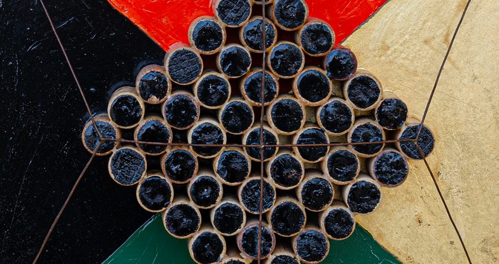 Sugerez un soi de curiozitate a privitorului, de a întrezări prin ramele vechilor geamuri pe care le folosesc, aglomerate de suflete și voci care zbiară de dincolo, imaginea fiind total deformată, în planul compozițional apărând o cu totul altă poveste care abstractizează total realitatea. Este ca un fel de film a cărui subtitrare este de la alt film. Toate compozițiile pornesc de la exterior către interior. Ramele au dictat și influențat sensul construcțiilor interioare, aidoma zgomotului venit din exterior care face ecouri distorsionate în casă, combinându-se cu sunetele domestice deja existente.”