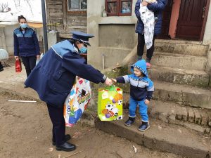 Astfel, poliţiştii au vizitat 30 de copiii din localităţile Castranova, Coşoveni, Tălpaş şi Fărcaş, cărora, pe langă jucării, alimente, haine, şi produse electronice le-au dăruit şi o parte din timpul lor, în care cei mici i-au cunoscut pe oamenii în uniformă.