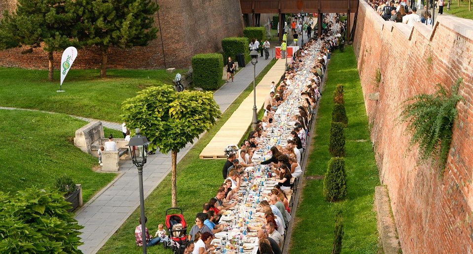 S-a scris istorie în acest weekend în Alba Iulia. Orașul a intrat din nou în Guinness World Records pentru cea mai lungă masă realizată din materiale reciclabile. Inițiativa aparține Bloom The World și partenerilor strategici care au organizat, pe 13 septembrie, evenimentul „Masa Care Unește”. Peste 10.000 de invitați, din Transilvania, dar și din țări precum Statele Unite, Olanda, Germania sau Nepal s-au așezat la masa comunitară lungă de peste 2.7 kilometri construită în jurul Cetății Alba Carolina. Este a treia atestare obținută de Alba Iulia în Guinness World Records, după cea din 2009 (Marea Îmbrățișare a Cetății Alba Carolina) și cea din 2018 (Cea mai mare hartă a unei țări formată din oameni).
