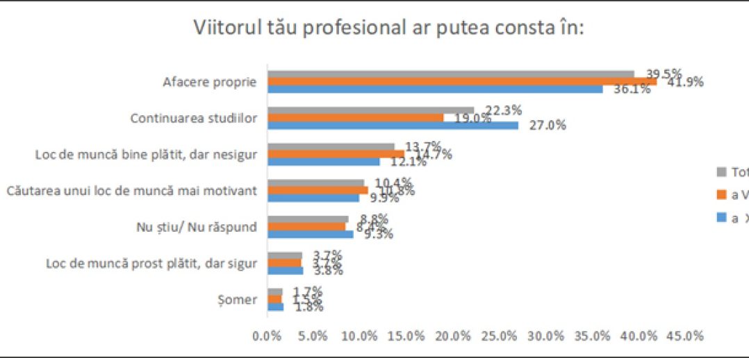Mai puțin de jumătate (49,3%) dintre elevii care vor susține anul viitor examene, fie Evaluarea națională, fie Bacalaureatul, sunt optimiști în privința viitoarei cariere, în vreme ce jumătate dintre liceeni nu sunt mulțumiți de felul în care școala îi formează în domeniul educației și pregătirii pentru carieră. Pentru cei mai mulți dintre elevii intervievați, dezvoltarea unei afaceri proprii este mai tentantă decât continuarea studiilor (39,5% versus 22,3%), iar teama de eșec este identificată ca primă dificultate în alegerea unui traseu educațional/profesional (peste trei din cinci participanți), urmată de nesiguranța legată de viitor (aproape jumătate) și lipsa informațiilor (pondere similară – aproape jumătate), arată datele unei anchete Salvați Copiii România.