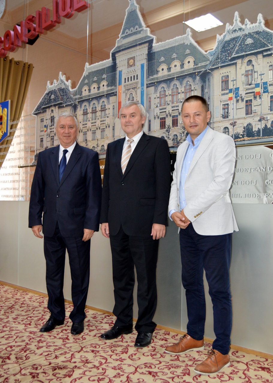 Președintele Consiliului Județean (CJ) Dolj, Ion Prioteasa, a primit miercuri, alături de vicepreședintele Cosmin Vasile, vizita ambasadorului extraordinar și plenipotențiar al Republicii Belarus în România, Excelența Sa Andrei Grinkevich.
