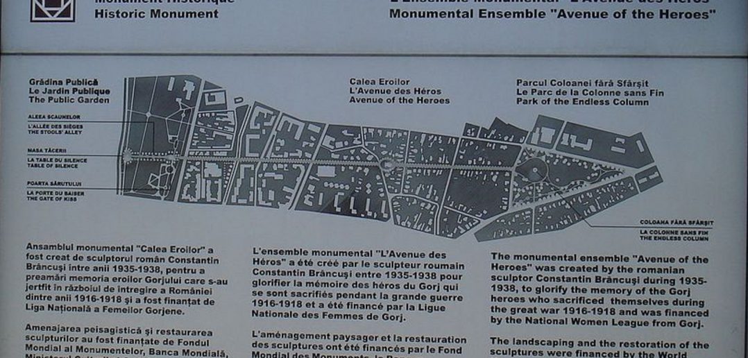 ‹‹“Coloana fără de sfârşit”, denumită local ”Coloana recunoştinţei fără sfârşit faţă de eroii patriei”, cunoscută şi sub apelaţia “Coloana Infinită”, cel mai important monument al artei contemporane, s-a realizat în 1937 şi 1938.