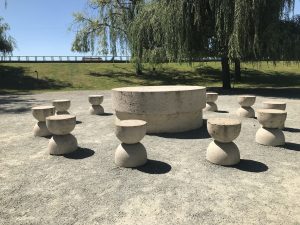 În jurul „Mesei tăcerii”, în 1938, au fost grupate scaunele-clepsidră rotunde, două câte două, dar artistul nu le-a lăsat astfel, punându-le la egală distanţă faţă de masă şi între ele, subliniind prezenţa imaginară a unui cerc semnificativ››, explică Prof. Dr. Ion Mocioi în „BRÂNCUŞI – OPERA”.