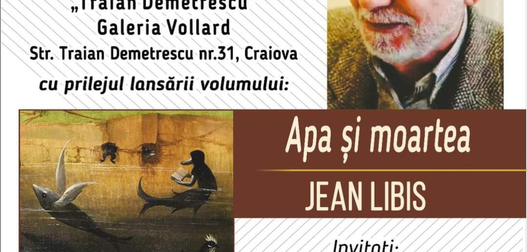 Casa de Cultură „Traian Demetrescu” vă invită vineri, de la ora 12:00, la lansarea volumului „Apa și moartea” al autorului francez Jean Libis, eveniment în cadrul Zilelor „Gilbert Durand” la Craiova, ed. a III-a, dedicat filosofiei imaginarului și gânditorilor din Europa centrală și de est.
