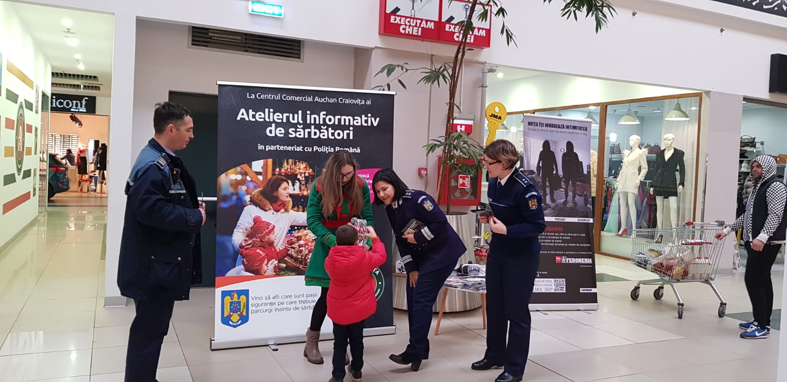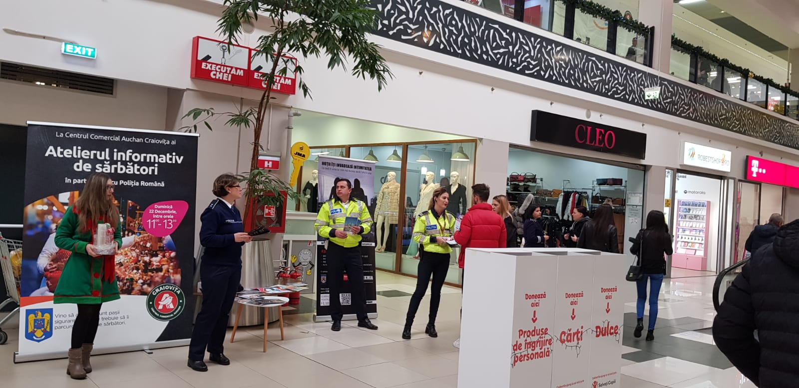 Poliţiştii Compartimentului de Analiză şi Prevenire a Criminalităţii Dolj, împreună cu cei ai Biroului Rutier Craiova şi cei ai Secţiei 1 Poliţie Craiova s-au aflat astăzi, 22 decembrie, într-un important centru comercial din Craiova.