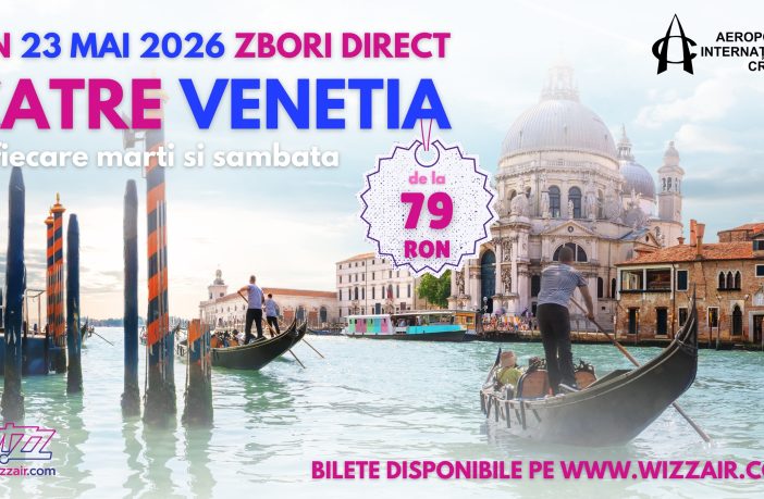 Wizz Air, principalul transportator aerian din România, are plăcerea de a anunța astăzi lansarea unei rute noi din Craiova către o destinație populară și mult așteptată din Italia. Tarifele pornesc de la doar 79 RON, iar biletele sunt deja disponibile pe wizzair.com și prin aplicația mobilă WIZZ. Începând cu 23 mai, Wizz Air va lansa zboruri din Craiova către Veneția (Italia), operate în zilele de marți și sâmbătă. Noua rută vine în completarea extinderii rețelei Wizz Air din ultimul an, care a inclus alocarea unei a doua aeronave bazei din Craiova și lansarea…