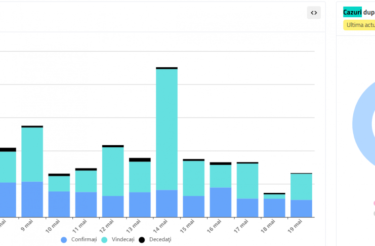 Până astăzi, 19 mai, pe teritoriul României, au fost confirmate 17.191 de cazuri de persoane infectate cu virusul COVID – 19 (coronavirus). Dintre persoanele confirmate pozitiv, 10.166 au fost declarate vindecate și externate. Numărul de cazuri confirmate, pe județe, potrivit raportării Institutului Național de Sănătate Publică: Nr. crt. Județ Număr de cazuri confirmate 1. Alba 271 2. Arad 696 3. Argeș 219 4. Bacău 453 5. Bihor 517 6. Bistrița-Năsăud 305 7. Botoșani 676 8. Brașov 630 9. Brăila 19 10. Buzău 141 11. Caraș-Severin 110 12. Călărași 75 13.…