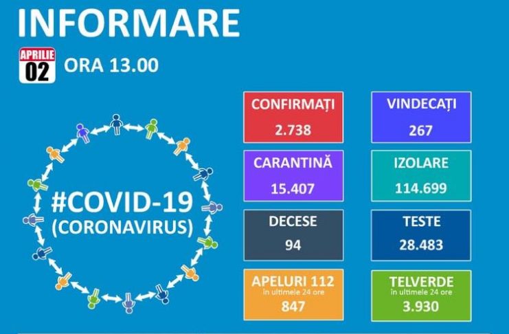 De la intrarea în vigoare a Ordonanței Militare nr. 2 și până în prezent, Poliția a plasat în carantină instituționalizată 1.290 de persoane care nu au respectat perioada de autoizolare. De asemenea, 50 de persoane aflate în carantină au părăsit locația în care au fost plasate, pentru acestea fiind dispusă măsura carantinării pentru o nouă perioadă de 14 zile. Până astăzi, 2 aprilie, pe teritoriul României, au fost confirmate 2.738 de cazuri de persoane infectate cu virusul COVID – 19 (coronavirus). Dintre persoanele confirmate pozitiv, 267 au fost declarate vindecate și…