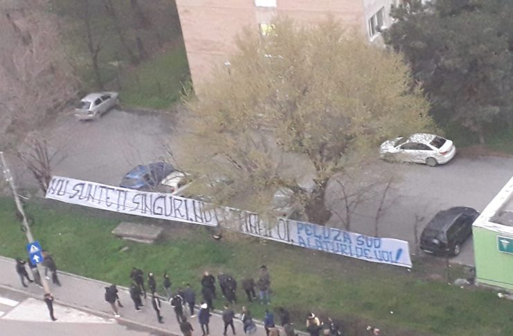 uitrașii Peluzei Sud au desfăsurat, in aceasta seara, un banner urias la poarta Spitalului de Boli Infecțioase „Dr. Victor Babeș”. Felicitări!