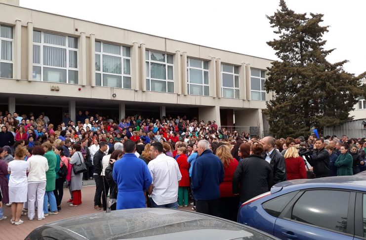 Peste 450 de sindicaliști protestează, din nou, astăzi, pentru două ore, în curtea spitalului Clinic Județean Craiova. Printre protestatari se află asistenți, farmaciști, chimiști și infirmieri. Aceștia spun ca nu vor fi afectați bolnavii și că nu banii sunt principalul motiv, ci dezbinarea din cadrul secțiilor produsă de noua lege a salarizării. Greviștii spun că dacă nu se rezolvă nimic, devineri vor intra în grevă generală. De asemenea, cadrele medicale cer eliminarea plafonului de 30% pe ordonator principal de credite, impus de Legea salarizării bugetare. „Nu se va rezolva nimic pana…