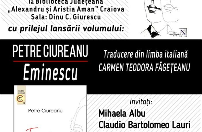 Biblioteca Județeană „Alexandru și Aristia Aman” găzduiește joi, 11 ianuarie 2024, lansare volumului „Eminescu”, autor Petre Ciureanu, volum tradus din limba italiană de Carmen Teodora Făgețeanu. Evenimentul va avea loc in sala „Dinu C. Giurescu”, începând cu ora 16.30, în prezența invitaților Mihaela Albu, Claudio Bartolomeo Lauri, Petrișor Militaru, Dan Neamu și Victor Șapcă. Moderator al evenimentului este Nicolae Marinescu, director al Editurii Aius. „Volumul a apărut la Editura Aius, în Colecția Cărțile Exilului. Monografia Eminescu, de Petre Ciureanu, publicată în Italia, în 1946, ajunge pentru prima dată în fața…