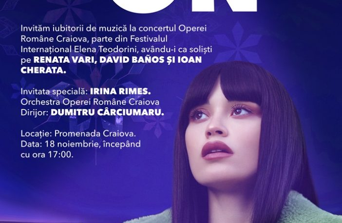 Promenada se îmbracă de sărbătoare și invită craiovenii, sâmbătă, 18 noiembrie, începând cu ora 17:00, să se bucure de o seară memorabilă la evenimentul muzical extraordinar susținut de artista Irina Rimes și de Opera Română Craiova. Seara va culmina cu momentul magic în care se vor aprinde luminile decorațiunilor de iarnă. Spectacolul va începe cu momente muzicale interpretate de soliștii Renata Vari, David Baños și Ioan Cherata, alături de Orchestra Operei Române Craiova, sub bagheta dirijorului Dumitru Cârciumaru, continuând cu invitata specială a serii, Irina Rimes, care va interpreta atât…