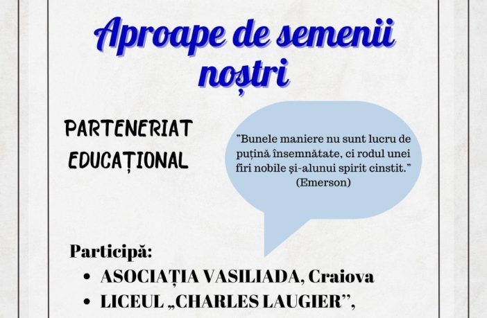Biblioteca Județeană „Alexandru și Aristia Aman” organizează în parteneriat cu Asociația Vasiliada, Colegiul Naţional Pedagogic „Ştefan Velovan”, și Liceul „Charles Laugier’’ din Craiova, evenimentul Aproape de semenii noștri. Evenimentul va avea loc sâmbătă, 11 noiembrie 2023, în sala „Acad. Dinu C. Giurescu”, începând cu ora 09.30, și va cuprinde următoarele activități: Sceneta „Vizita”, de I.L. Caragiale, dramatizată de către elevii clasei a IV-a A, de la Colegiul Naţional Pedagogic „Ștefan Velovan”, Craiova ABC-ul bunelor maniere, prezentare Power Point realizată de către elevii clasei a VI-a C, de la Colegiul Naţional…