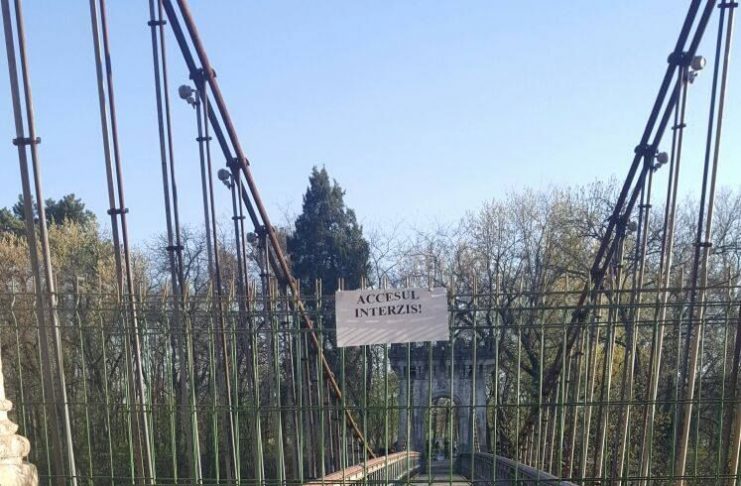 Podul suspendat din Parcul Nicolae Romanesu a fost închis, începand de astazi. Primăria Craiova anunță că această măsură a fost luată „pentru efectuarea unei verificări tehnice” fără a preciza o dată probabilă la care acesta ar putea fi redat circulației.