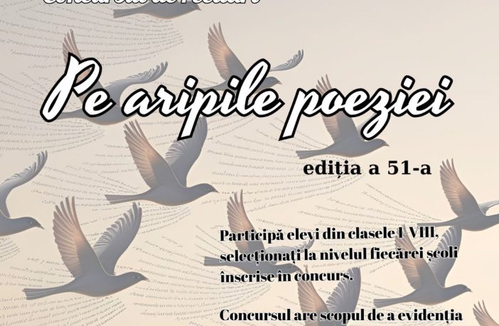 Secția pentru Copii și Tineret a Bibliotecii Județene „Alexandru și Aristia Aman” organizează cea de-a 51-a ediție a Concursului de recitări „Pe aripile poeziei”, ce se va desfășura în data de 30 mai 2025, începând cu ora 1300, în sala „Acad. Dinu C. Giurescu” a Bibliotecii Județene Aman. Fiecare unitate de învățământ din județul Dolj poate înscrie cel mult 2 elevi din ciclurile primar și gimnazial. Atenție: înscrierile se fac doar de către cadrul didactic îndrumător!. Poeziile pot fi alese din lirica românească sau universală, scopul concursului fiind acela de…