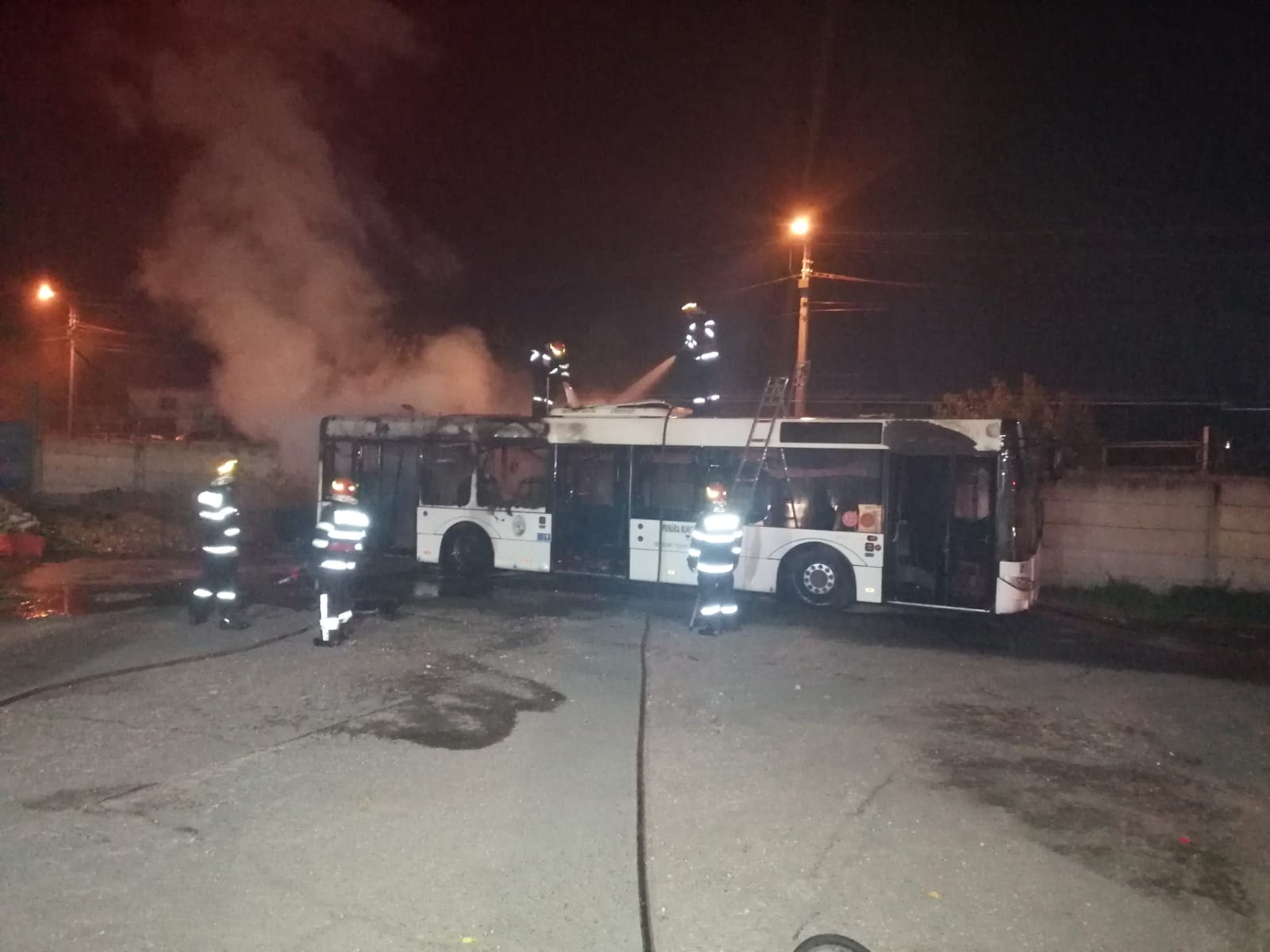 Secția de Pompieri Craiova a intervenit cu două autospeciale de lucru cu apă și spumă pentru stingerea unui incendiu izbucnit la un autobuz, în incinta societății locale de transport în comun.