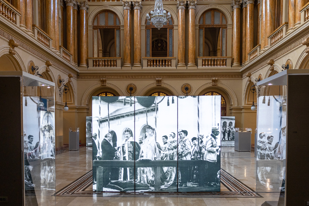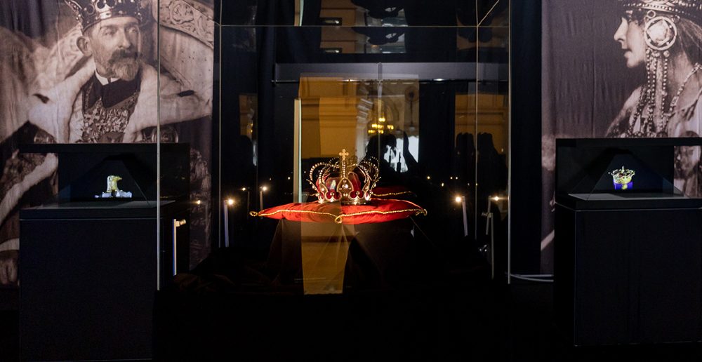Piesa centrală a expoziției este Coroana de oțel a regilor României, expusă alături de proiecțiile holografice ale coroanei reginei Maria și ale sceptrului regelui Ferdinand, fiind astfel integrate în discursul expozițional mijloace moderne de comunicare a informației.