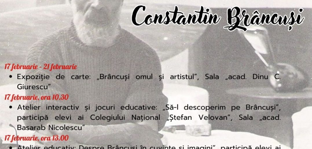 - 17 februarie, ora 10.30 – atelier interactiv și jocuri educative „Să-l descoperim pe Brâncuși” -participă elevi ai Colegiului Național „Ștefan Velovan”, sala „acad.Basarab Nicolescu”