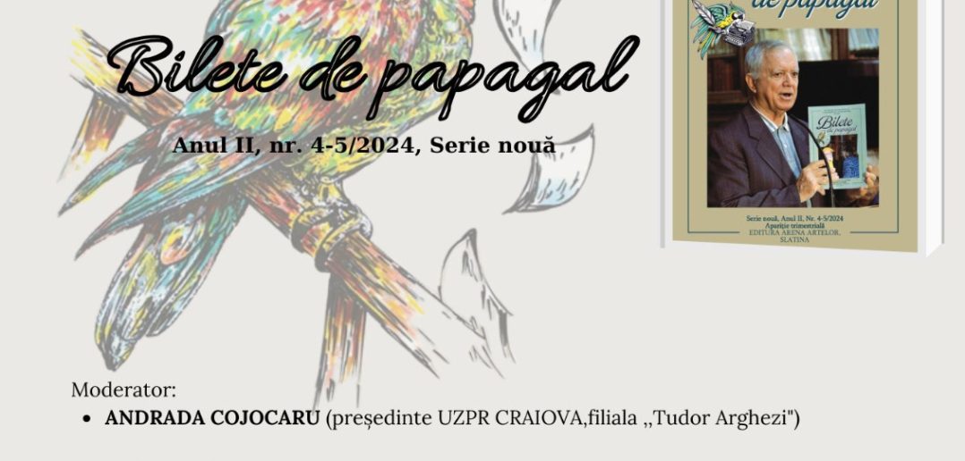 Biblioteca Județeană „Alexandru și Aristia Aman”, alături de Uniunea Ziariștilor Profesioniști din România, Filiala „Tudor Arghezi” Craiova, și Editura „Arena Artelor” din Slatina, așteaptă iubitorii de frumos, marți, la lansarea numărului 4-5, serie nouă, anul II al revistei „Bilete de Papagal”.