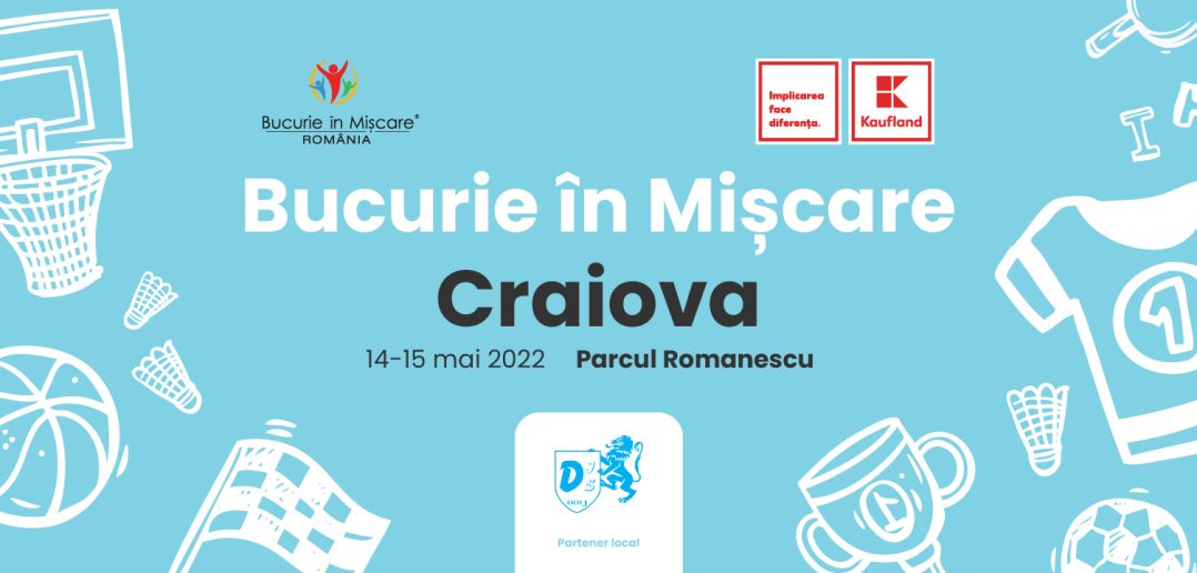 Festivalul Bucurie în Mișcare, organizat de Asociația 11even cu sprijinul Kaufland România, ajunge weekendul acesta la Craiova. Împreună cu partenerul local de organizare, Direcția Județeană de Sport Dolj și cu sprijinul Primăriei Municipiului Craiova, am pregătit o mulțime de jocuri și activități, demonstrații sportive, dansuri și arte marțiale, concursuri pentru gașca de prieteni și pentru întreaga familie, terenuri de badminton, minifotbal și volei, panou de escaladă, precum și workshopuri cu experți în sport și nutriție în cadrul zonei #rutinademișcare. Rutina de Mișcare este manifestul nostru pentru un stil de viață sănătos, pe care îl promovăm atât în cadrul evenimentelor, cât și online, printr-o campanie care scoate la lumină poveștile a 100 de oameni din țară, indiferent de vârstă, sex sau ocupație, care includ mișcarea în rutina lor zilnică. Cele 100 de povești vor fi postate în decursul anului 2022 pe paginile de Facebook și Instagram ale programului Bucurie în Mișcare România și pe site-ul www.bucurieinmiscare.ro și au rolul de a ne inspira să alegem mișcarea, zi de zi.