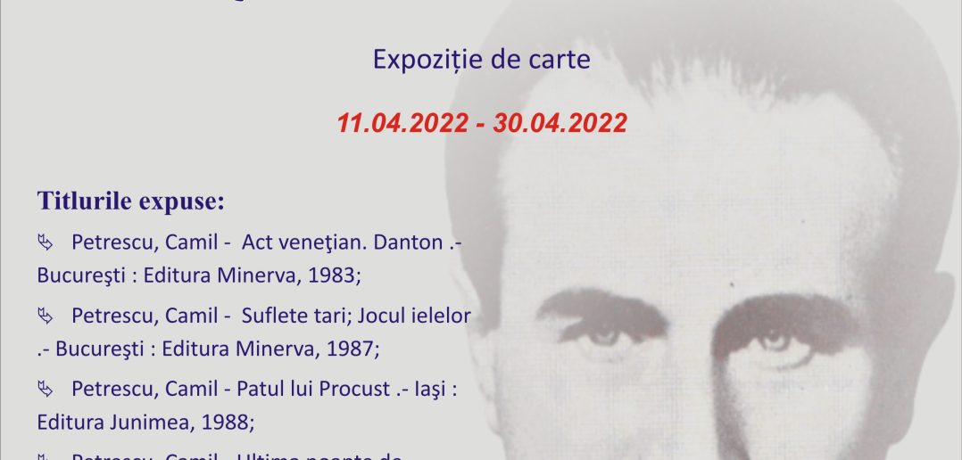 Biblioteca Județeană „Alexandru și Aristia Aman”, prin serviciul „Depozit General și Săli de Lectură”, organizează în perioada 11 aprilie- 30 aprilie, expoziția de carte „Camil Petrescu (1894 – 1957)”, marcând astfel împlinirea a 128 de ani de la nașterea scriitorului Camil Petrescu.