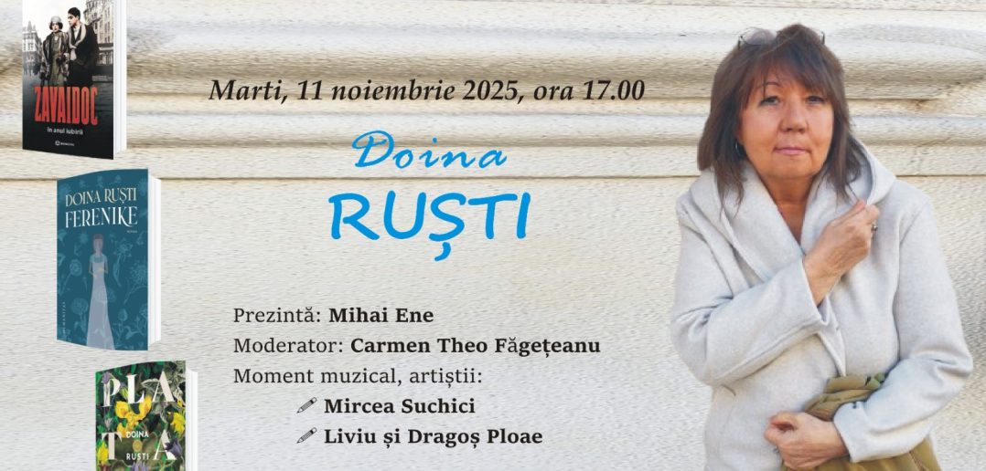 Despre aceste volume și despre pofta de poveste inconfundabilă a Doinei Ruști va vorbi criticul literar Mihai Ene, care va oferi publicului repere de lectură și interpretare. Evenimentul va fi moderat de criticul literar Carmen Theo Făgețeanu, gazdă a unui dialog viu între autor, carte și cititor.
