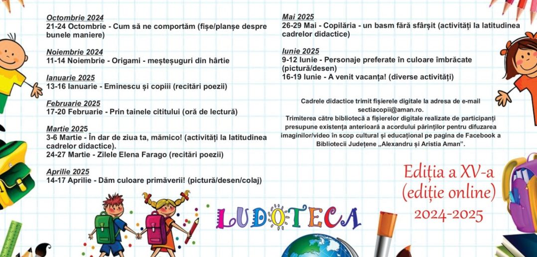 Biblioteca Județeană „Alexandru și Aristia Aman” organizează cea de-a XV-a ediție (ediție online) a proiectului „Cărticica pentru prichindei și copii mai măricei”, proiect care se adresează preșcolarilor și elevilor din ciclul primar.