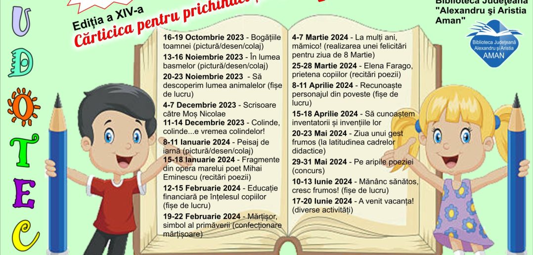 Biblioteca Județeană „Alexandru și Aristia Aman” organizează cea de-a XIV-a ediție a proiectului „Cărticica pentru prichindei și copii mai măricei”, proiect care se adresează preșcolarilor și elevilor din ciclul primar.