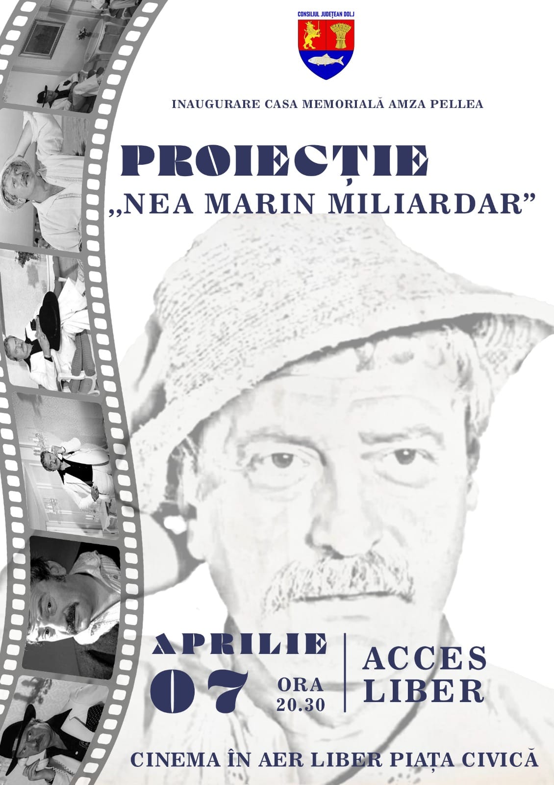 Deschiderea oficială a Casei Memoriale Amza Pellea este programată pentru data de 7 aprilie 2024, iar toți cei interesați sunt invitați să se alăture în acest moment pentru a sărbători viața și opera unuia dintre cei mai iubiți și respectați actori români. Începând cu ora 20.00, în Parcul Tineretului din Băilești va avea loc proiecția filmului Filmul Nea Mărin miliardar.