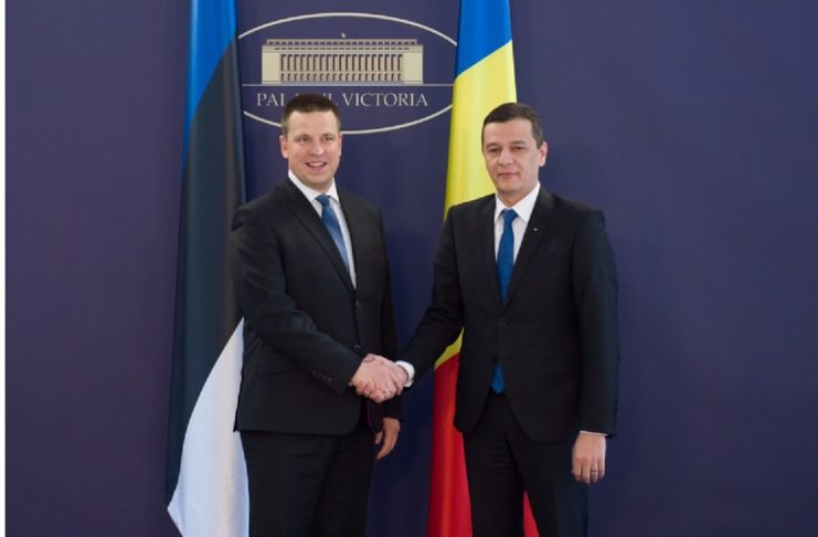 Sorin Grindeanu s-a întâlnit astăzi, la Palatul Victoria, cu omologul său eston, Jüri Ratas. Vizita la București a premierului Ratas face parte dintr-un turneu organizat în mai multe state (Slovacia, Slovenia, Cehia, Ungaria), în perspectiva deținerii de către Estonia a Președinției rotative a Consiliului UE în semestrul al doilea al anului 2017. Discuţiile s-au concentrat în principal pe viitorul Uniunii Europene, în contextul Brexit. Cei doi oficiali au discutat și despre aprofundarea relațiilor bilaterale, în special în domeniul economic, dar şi în alte sectoare, precum apărare, cyber, educaţie, energie, cultură…