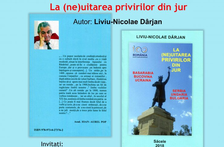 Biblioteca Județeană „Alexandru și Aristia Aman” găzduiește marți, 25.09.2018, începând cu ora 17:00, lansarea volumului „La (ne)uitarea privirilor din jur”, autor Liviu – Nicolae Dârjan. Evenimentul se va desfășura în sala “Marin Sorescu” și va fi moderat de prof. Iuliana Firan. Invitați: jurnalistul Mircea Pospai; prof. dr. Toma Rădulescu; prof. Popa Ion. Volumul beneficiază de un Cuvânt înainte scris de acad. Ioan-Aurel Pop, președintele Academiei Române și este dedicat Centenarului Marii Uniri și a fost publicat cu binecuvântarea Arhiepiscopului Pimen al Sucevei și Rădăuților, cu sprijinul Ministerului pentru Românii de…