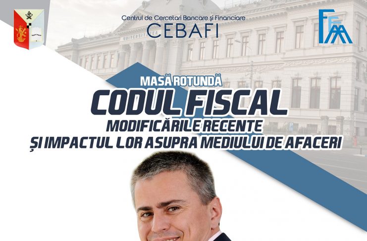 Centrul de Cercetări Bancare și Financiare (CEBAFI) al Universității din Craiova organizează miercuri, 15 noiembrie 2017, masa rotundă cu tema „Codul fiscal – modificările recente și impactul lor asupra mediului de afaceri”. Evenimentul este programat să se desfășoare la Sala 228 – Clădirea Centrală (str. A.I. Cuza, nr. 13), cu începere de la ora 12:00. Invitat și speaker în cadrul evenimentului este Gabriel Biriș, partener fondator „Biriș Goran”, specialist în fiscalitate și fost secretar de stat în Ministerul Finanțelor Publice. La eveniment vor participa cadre didactice și doctoranzi ai Facultății…