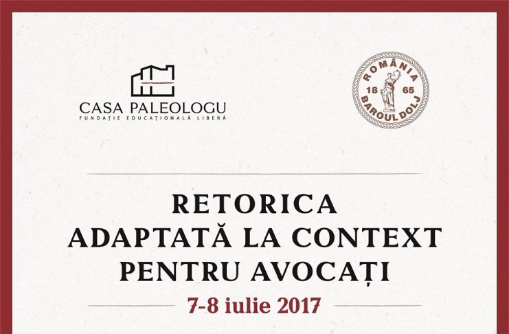 Baroul Dolj organizează în perioada 7-8 iulie 2017, în colaborare cu Fundaţia Paleologu, cursul “Retorica adaptată la context pentru avocati”, susţinut de Theodor Paleologu, pentru un număr de maxim 20 de participanţi. Înscrierile la curs se fac la Secretariatul Baroului Dolj. Taxa de participare este de 250 lei şi se achită la casieria sau în contul bancar al Baroului Dolj. Cursul de retorică oferă o introducere în materie, punând accentul pe trei aspecte: teorie, exemple şi exerciţii. Situaţiile în care suntem chemaţi să luăm cuvîntul în public pot fi variate:…