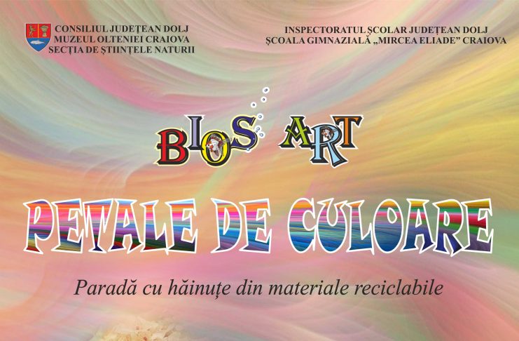 Secția de Științele Naturii, din cadrul Muzeului Olteniei Craiova, organizează miercuri, 7 iunie 2017, începând cu ora 16.00, în spațiul interactiv din str. Popa Șapcă, nr. 8, acțiunea culturală “PETALE DE CULOARE – Paradă cu hăinuțe din materiale reciclabile”. Manifestarea cultural-educativă este organizată de: Carmen Popa – profesor învățământul preprimar, Dr. Mirela Ridiche și Drd. Lila Gima (muzeografi – Muzeul Olteniei Craiova), și se derulează în cadrul proiectului cultural “Bios Art”. Participanţi vor fi elevii clasei „I” A de la Școala Gimnazială „Mircea Eliade” Craiova și invitați ai acestora.