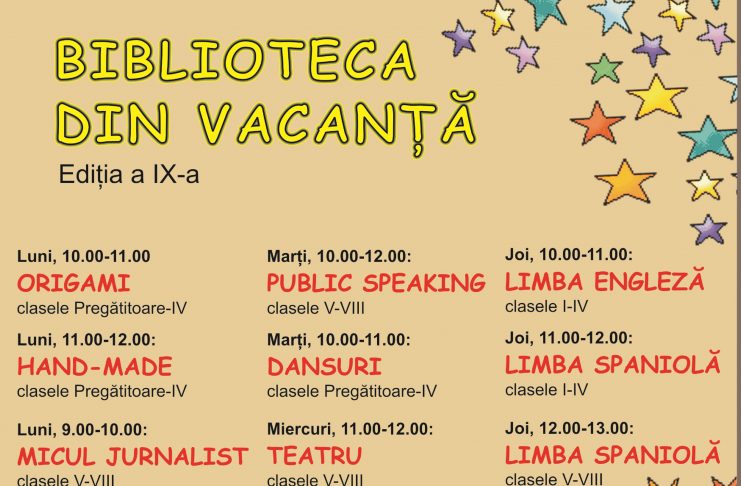 De nouă ani de zile, Biblioteca Județeană „Alexandru și Aristia Aman” organizează cursuri gratuite pentru elevi, în cadrul proiectului „Biblioteca din vacanță”. Anul acesta, înscrierile se fac în intervalul 26-30 iunie,între orele 8.30-16.30, la Secţia pentru Copii şi Tineret a Bibliotecii Judeţene “Alexandru și Aristia Aman”,strada M. Kogălniceanu, nr.9 sau la numerele de telefon 0251532267 și 0351441809, interior 104. Numărul locurilor disponibile este limitat. În perioada 3 iulie – 31 august, la Biblioteca Județeană „Alexandru și Aristia Aman” se vor desfășura, săptămânal, o serie de ateliere și cursuri educative, structurate…