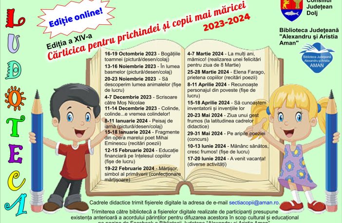 Biblioteca Județeană „Alexandru și Aristia Aman”, prin secția Mediatecă și American Corner Craiova, organizează în parteneriat cu Logiscool Craiova 4 ateliere GRATUITE de 3D Printing și Creare și Editare Video. Atelierele sunt finanțate din grantul anual oferit de Departamentul de Stat al Statelor Unite ale Americii, prin Ambasada S.U.A. la București. Atelierele se vor desfășura în perioada 30 octombrie – 3 noiembrie 2023, de luni până vineri după cum urmează: grupa I între orele 9:00-13:00 și grupa a II-a între orele 13:30-16:30. Atelierele se adresează elevilor cu vârsta cuprinsă între 12…