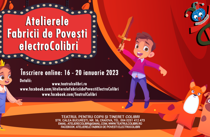 Teatrul Colibri Craiova organizează o nouă serie de ateliere de creație în perioada 30 ianuarie – 26 martie 2023. Preţul / atelier (întreaga perioadă) este 170 lei. Persoanele care se înscriu la 3 ateliere achită doar 2, unul fiind gratuit. Cei care optează pentru 4 ateliere, plătesc 3 dintre ele, iar persoanele care aleg 5 ateliere, achită 4. Înscrieri se fac în intervalul 16 – 20 ianuarie 2023, doar prin formular on-line, link-urile pentru fiecare atelier în parte fiind disponibile din 16 ianuarie, de la ora 00:01, până în data de…