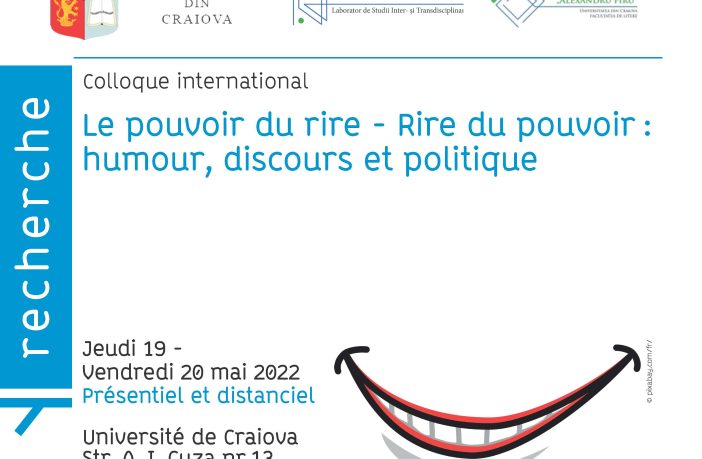 Facultatea de Litere, Universitatea din Craiova, anunță desfășurarea Colocviului Internațional LE POUVOIR DU RIRE – RIRE DU POUVOIR. HUMOUR, DISCOURS ET POLITIQUE, în zilele de 19 și 20 mai. Colocviul este organizat de Facultatea de Litere, Școala Doctorală „Alexandru Piru”, Laboratorul de cercetare STUDITrans, în parteneriat cu PLIDAM – INALCO, Paris, și cu Université Lumière Lyon 2, Franța. Tematica colocviului este una de mare actualitate, vizând modul în care analiza de discurs centrată pe categoria umorului poate „vindeca” relele unei societăți. Participarea internațională este una foarte importantă, 65 de profesori…