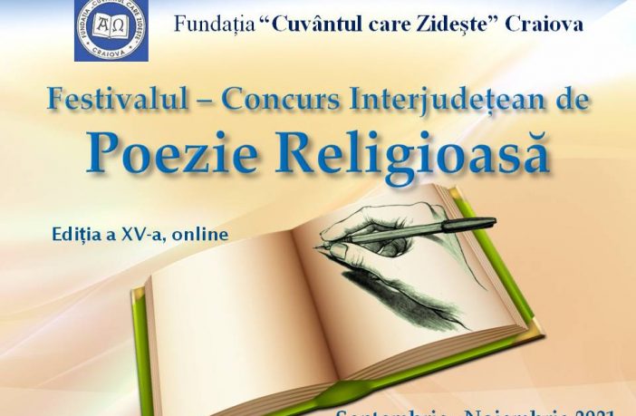 Fundația „Cuvântul care Zideşte” a Mitropoliei Olteniei organizează, în perioada septembrie – noiembrie 2021, ediția a XV-a a Festivalului – Concurs Interjudețean de Poezie Religioasă. Tema concursului din acest an este „Credința – atâta liniște, atâta culoare!”, data limită pentru înscriere fiind 22 octombrie 2021. Festivalul – Concurs de Poezie Religioasă, ediţia a XV-a, se desfăşoară online şi se adresează elevilor din învățământul primar, gimnazial și liceal. Înscrierea în concurs presupune transmiterea unei poezii în limba română (minim 2 strofe la Secțiunea Ciclul Primar și minim 3 strofe la Secțiunile…