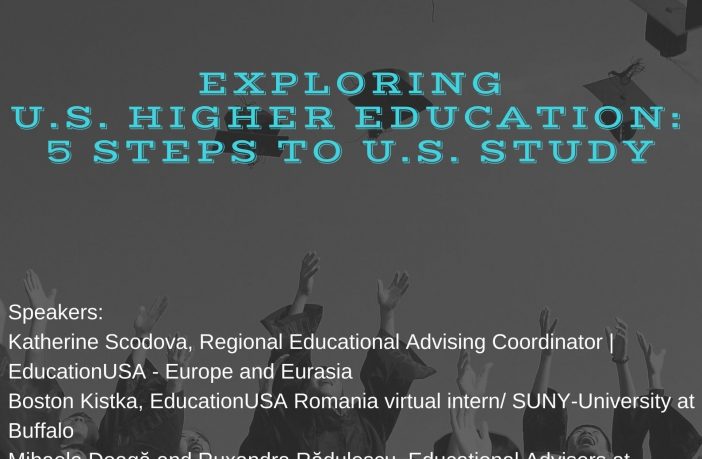 Biblioteca Județeană „Alexandru și Aristia Aman”, prin American Corner Craiova, găzduiește miercuri, 27 ianuarie 2021, la ora 14:00, conferința națională „Exploring U.S. Higher Education: 5 Steps to U.S. Study”. Vor susține prezentări: – Katherine Scodova, Regional Educational Advising Coordinator/EducationUSA Europe and Eurasia; – Boston Kistka, Education USA Romania virtual intern/ SUNY-University at Buffalo; – Mihaela Doagă și Ruxandra Rădulescu, Educational Advisers at Fulbright Educational Advising Center. Și-au anunțat participarea elevi de la Colegiului Național Militar „Tudor Vladimirescu”, coordonați de profesoara Corina Mitrulescu, de la Colegiul Național „Elena Cuza”, coordonați de…