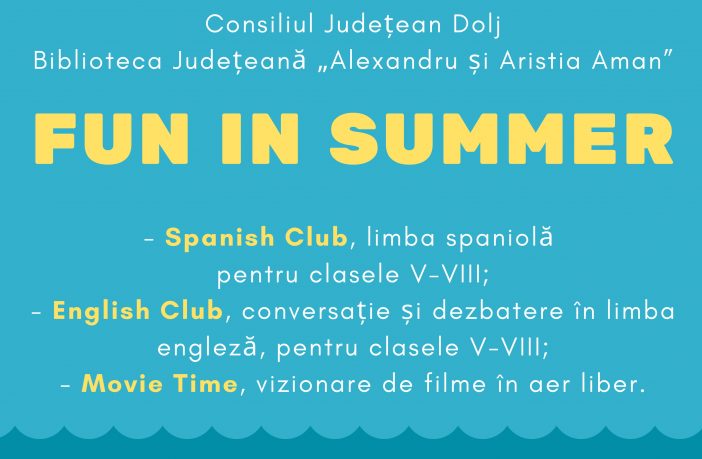 Biblioteca Județeană „Alexandru și Aristia Aman” organizează, în perioada 3 iulie – 28 august 2020, o nouă ediție a proiectului educațional „Fun in Summer”. Programul acestei ediții înglobează trei activități gratuite, distincte, și este adaptat normelor și condițiilor specifice perioadei pe care o traversăm. Prima activitate educațională a proiectului, Movie Time, se va desfășura săptămânal, în fiecare vineri, în lunile iulie și august, începând cu ora 20.30, în curtea Bibliotecii Județene „Alexandru și Aristia Aman”. În limita locurilor disponibile, craiovenii sunt invitați să vizioneze și să dezbată, în aer liber,…